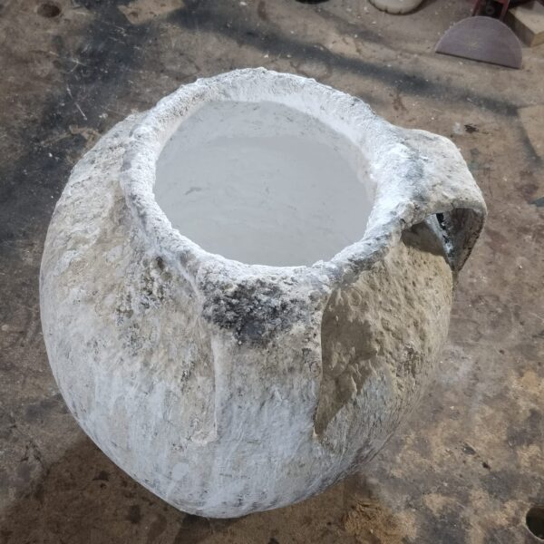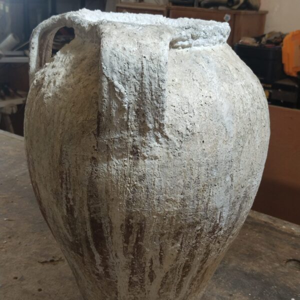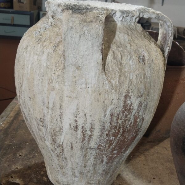 Déjese seducir por el encanto atemporal de esta Tinaja de Cal, una pieza singular que trasciende su función original para convertirse en una joya de la decoración con un profundo valor histórico. Esta robusta tinaja procede del corazón de un pueblo extremeño, Salorino, donde el sol y la tradición moldearon su existencia desde 1850 hasta 1900. Con su silueta firme y sus asas resistentes, la vasija ha resistido el paso del tiempo, portando en su barro el eco de las faenas de antaño. Su pátina exterior, de tonos blancos y ocres, es el testimonio vivo de su noble uso: el amasado de la cal viva, el «oro blanco» que blanqueó y protegió las casas de la comarca. Cada grieta y cada pincelada de cal reseca narra una historia de vida rural, convirtiendo a esta tinaja en una escultura rústica forjada por el trabajo manual y el paso de los siglos. Perfecta como pieza central decorativa en salones, patios o entradas, su presencia evoca la calma de una hacienda y realza cualquier rincón con un toque de estilo Wabi-Sabi que celebra la belleza de la imperfección. Más que decoración, es una inversión en autenticidad; esta pieza es un fragmento tangible de la vida rural española de finales del siglo XIX, un puente inigualable entre el pasado extremeño y su hogar. No adquiera solo una vasija, adquiera un pedazo de la historia rústica y eterna de Salorino para su espacio.